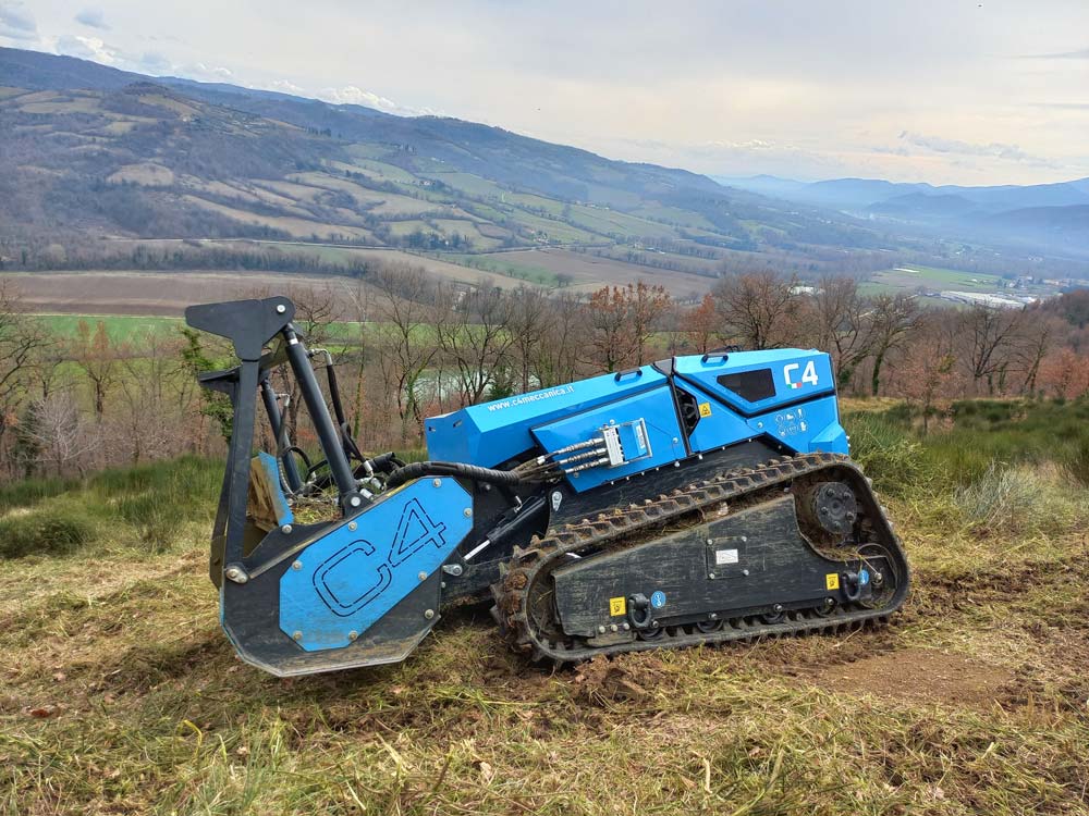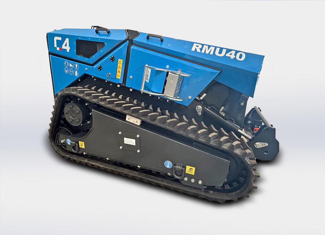 La RMU40 di C4 Meccanica è una innovativa macchina semovente radiocomandata multifunzione professionale, progettata per garantire massima sicurezza, prestazioni elevate e versatilità operativa in condizioni difficili e su terreni complessi.