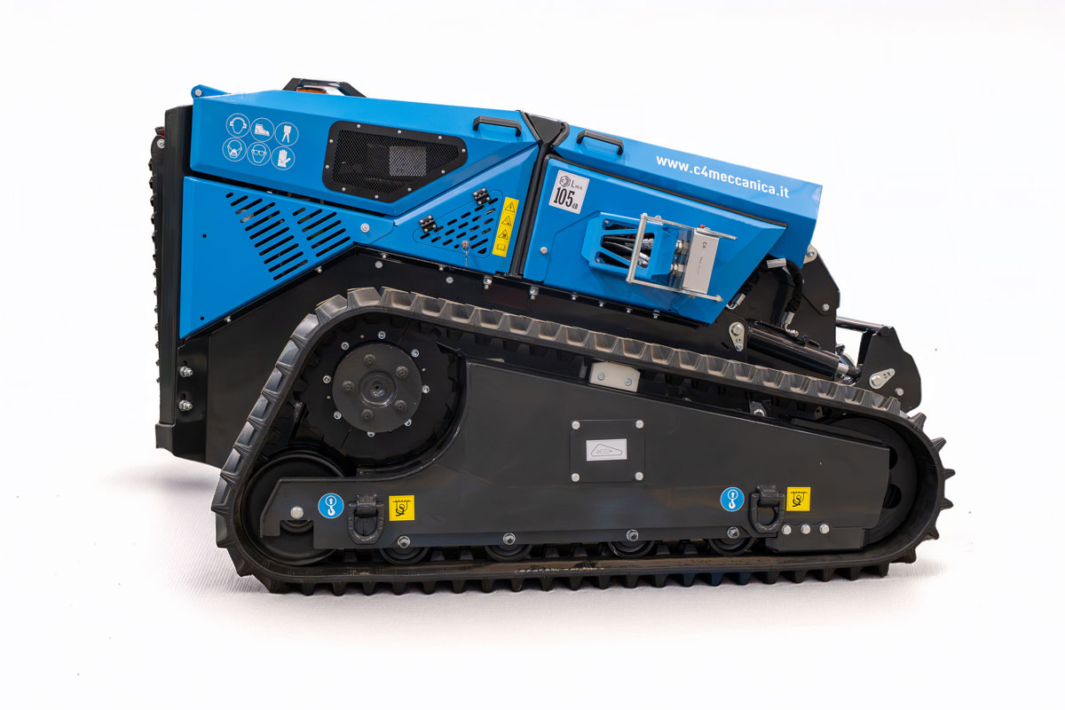 The RMU40 by C4 Meccanica is an innovative professional multifunction remote-controlled self-propelled machine, designed to ensure maximum safety, high performance, and operational versatility in difficult conditions and on complex terrain.
